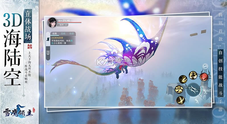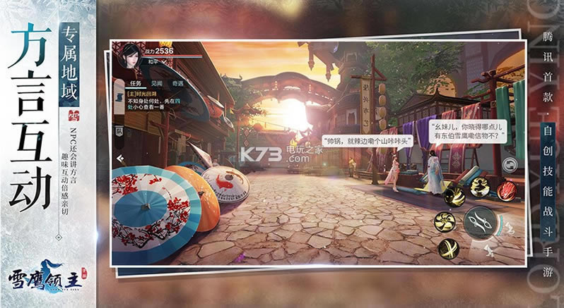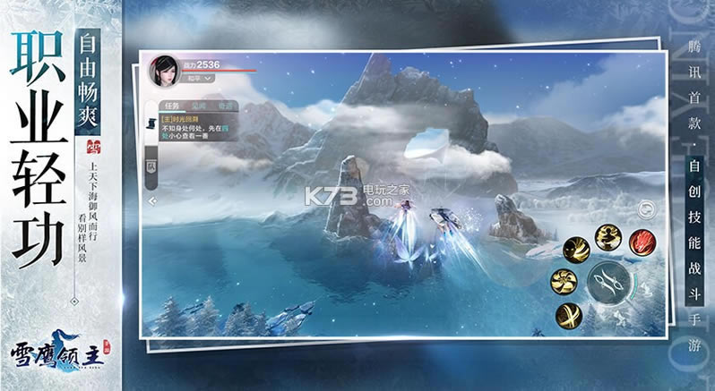 《雪鹰领主》是腾讯北极光工作室群自主研发的首款自创技能战斗手游,以团队PVP为核心战斗体验,突破常规技能设定,实现自定义。玩家可以融合动作、特效、伤害等创造自身专属技能,给对手出其不意的攻击,让玩家从战斗“参与者”变为战斗“定义者”。同时捏脸、时装染色、独创轻功、境界、法宝等系统玩法与原著完美融合,更有独创短视频社交功能,可随时分享虚拟与现实之间的生活点滴,成为网红博主与百万粉丝交流,结交同好征战玄幻异界。