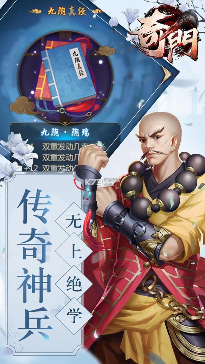 明朝末年,江湖动荡,宦官专权,倭寇入侵,乱世将至,且看你如何力挽狂澜扬万里,天涯从此不独行《奇门》是一个集养成、策略、探索、战斗于一身的正统武侠RPG手游,在游戏中玩家将化身一代掌门,招募各路武林侠客,重铸神兵,收集绝学,享受一趟荡气回肠、快意恩仇的江湖之旅。