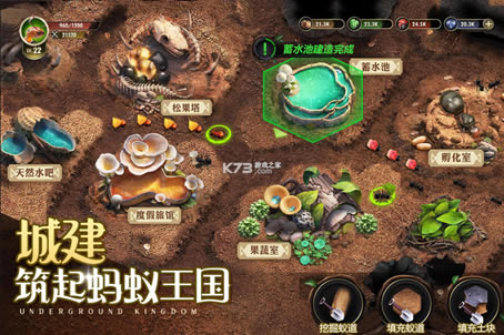 蚂蚁的巢穴可称为“城堡”,它为卵与后代建立了一个安全的成长环境。巢穴规划是蚁国发展的重要策略,你要科学建造地下蚁巢,挖掘蚁道,打造你心中的理想蚁国!