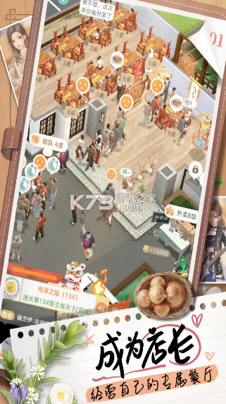 非常有趣的经营养成游戏,完美结合了装修布局、卡牌养成、装扮模拟等多种元素,带来无比精彩欢乐的游戏体验,可以自由发挥脑力和动手能力,研究各种各样的菜式 ,推出各种各样的美食,自由装修自己的店铺,也可以收集各种各样的时装,开设分店等,影响世界,弘扬中华文化。