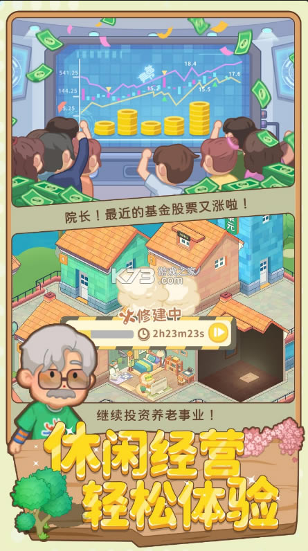 养老模拟器安卓版最新版,游戏中为玩家模拟了养老的生活,其中你能体验到老年生活中各种是生活日常,你需要经营一家养老院,签到各种活动能领取各种福利哦,还能将养老院改善的更加繁华哦!