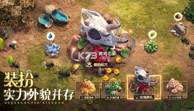 同时可以通过孵化饲养,组建专属蚂蚁雄师,和盟友并肩作战,抵御天敌,扩张领地,打造专属于你的地下蚂蚁王国,开启自然世界称霸之旅!