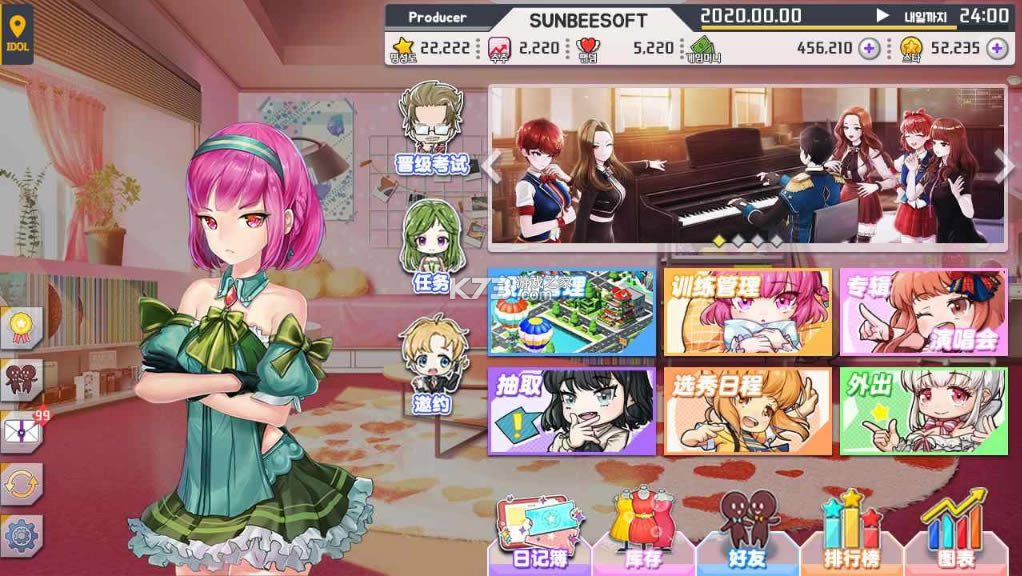 通过晋级考核,粉丝任务,来增加对偶像的好感,赢得股东们的信任