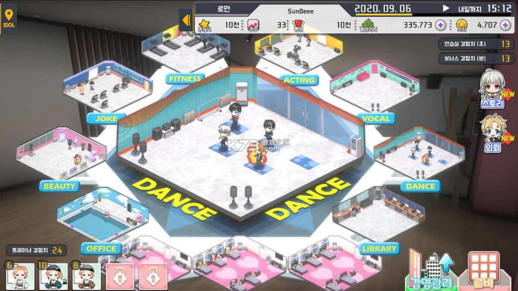 通过日程管理、声乐、舞蹈、演技训练,提高偶像的才能和魅力