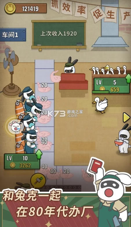 兔克创业记手游最新版本推出,这是一款可爱动物为主角的经营游戏,玩家从零开始,组建流水线,展开新鲜有趣的互动经营新体验,走上兔生巅峰哦。和兔克一起在80年代创造工厂,铸造创富神话。