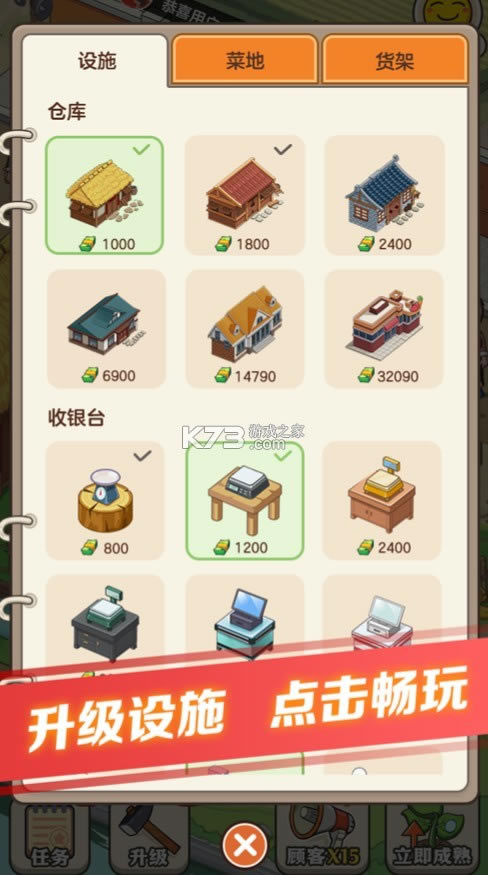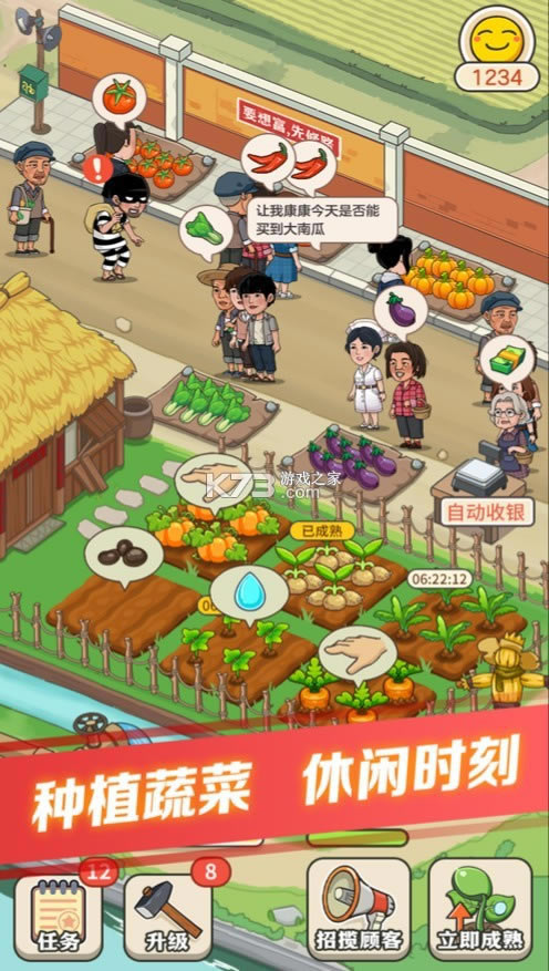 2、【玩法】操作玩法非常的简单,只需要通过游戏经营好自己家的菜场,不断的发展扩大在生产
