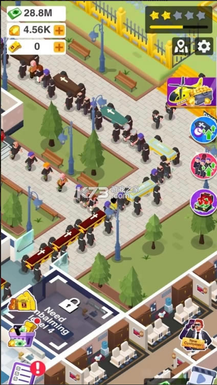 空闲的殡仪馆游戏是一款非常有趣的休闲经营模拟游戏,以殡仪馆为主题,拥有卡通的游戏画风,在这里去自由经营殡仪馆的各项事务,感受精彩欢乐的游戏体验,简单的操作方式,给到玩家们不错的体验,赚取收益,可以扩张经营规模