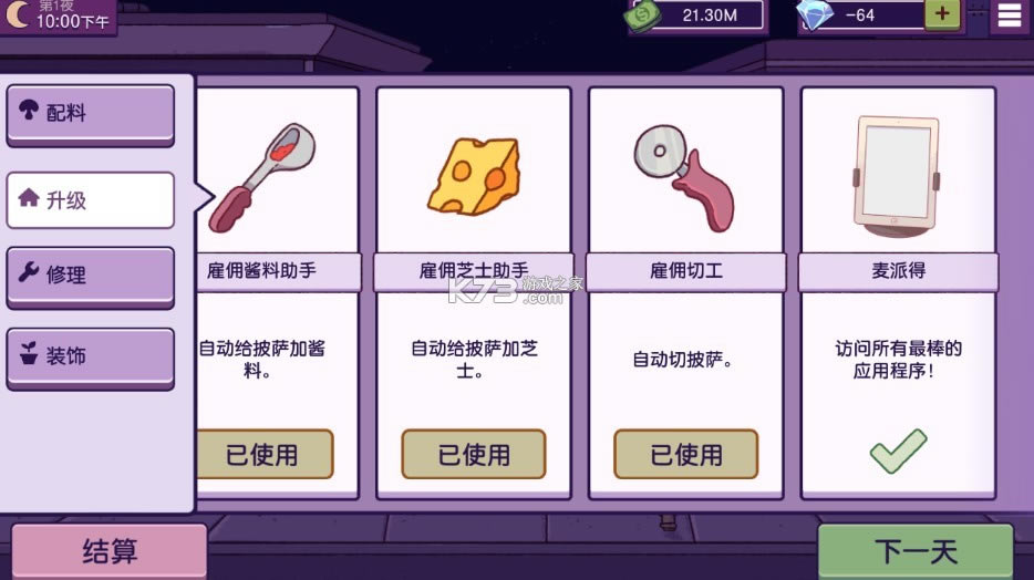 可以自由装饰披萨店面,可以用麦披萨的钱来装饰自己的披萨店,这样可以吸引到更多的人哦!