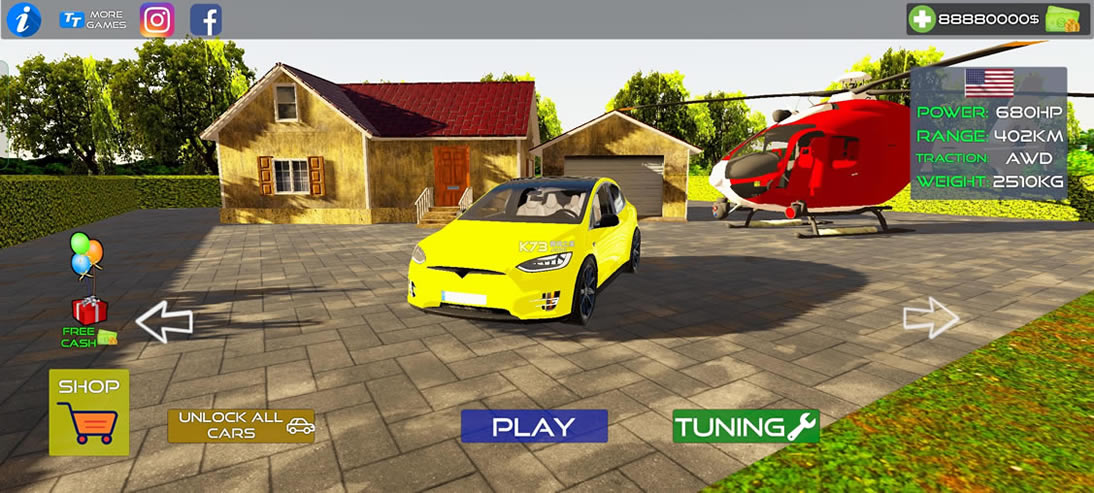 最新的汽车模拟器游戏,让您感受电动汽车的驾驶乐趣和动力。,玩家们在这里自由的驾驶着各种汽车行驶在道路上完成关卡里的各种任务和挑战,获得的奖励可以购买更多的汽车和改造。
