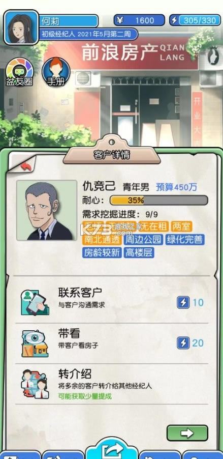 《您好!买房嘛?》是一款模拟房产中介经纪人日常工作的游戏。