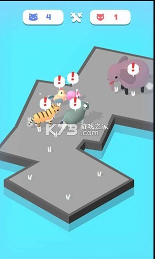 《动物岛战争(Animal Island War)》是一款动物模拟战争的游戏,玩家需要在自己的小岛上来养成动物,和其他小岛上的动物来进行对决,吞并他们快速的成长,闯关越多能够养成的动物就越多。