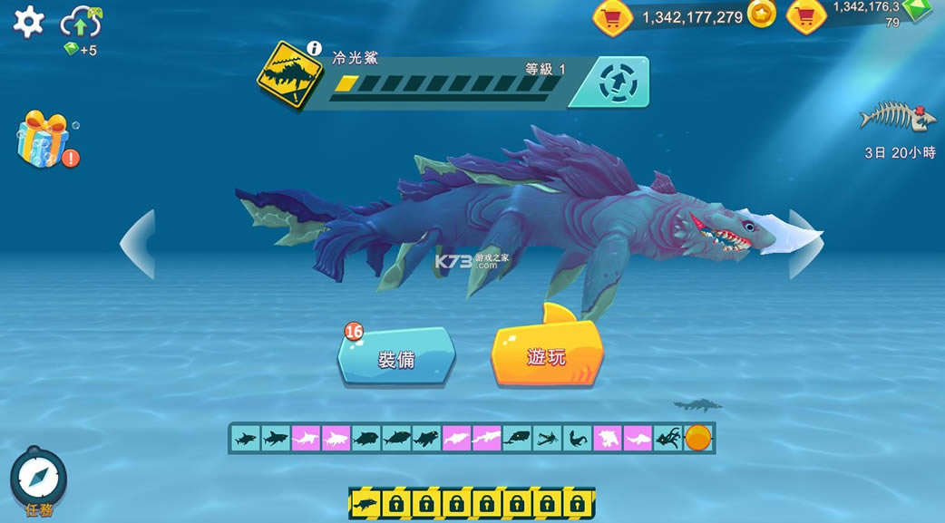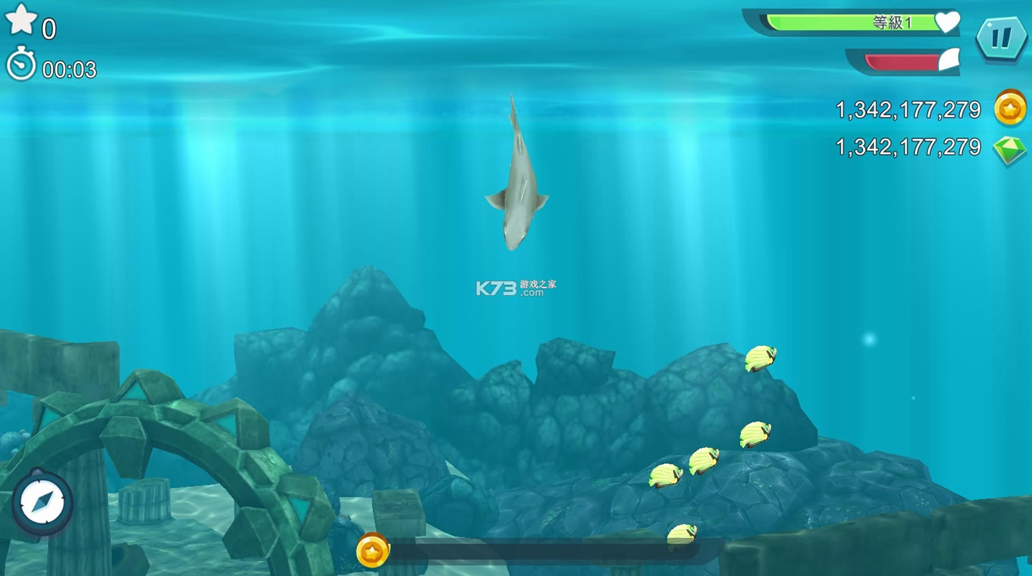 完成50个任务,寻找宝物取得金币与宝石,用来升级你的鲨鱼或者购买特殊救生道具