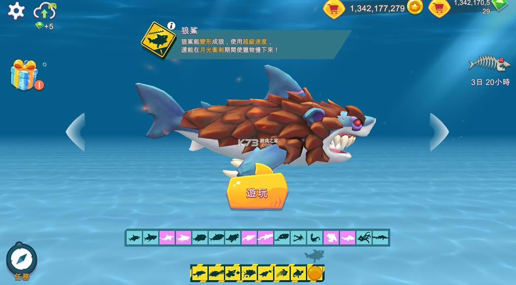 选择你喜欢的鲨鱼品种,每个鲨鱼的特性都是不一样的,有的咬合力是非常强的