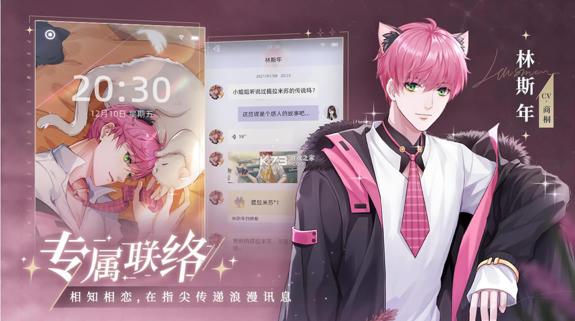 《猫之宿约者测试服》一款模拟恋爱的女性化游戏,游戏中存在多种不同的剧情,根据玩家的选择而定,主要玩法上是通过指尖点击触发对话,与多个不同性格的帅气男生邂逅。