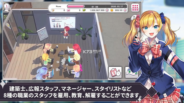 1.游戏中玩家以经济公司高管的身份,培养公司的偶像,通过各种经营策略一步一步通关。