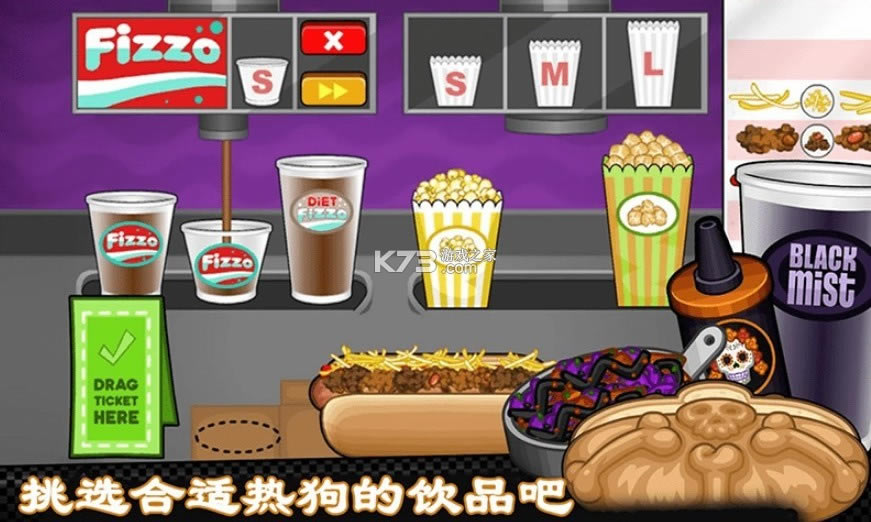 首先前往订餐站给饥饿的顾客写好菜单,然后回到厨房进行热狗制作烹饪,翻转多汁的热狗和香肠。移动各种美味的调料添加到您的热狗,跳转弹出美味的饮料和弹出一些新鲜爆米花完成这顿丰盛的热狗快餐。