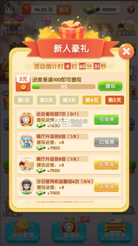 全民开餐厅红包版是一款正规的经验餐馆赚红包的小游戏,每天都会有最新的任务分享给玩家,在全民餐馆红包版游戏中赚的任务也多,红包的奖励越多,不同的美食分享你店内的客人,同时还可以一键升级你的餐厅哦!