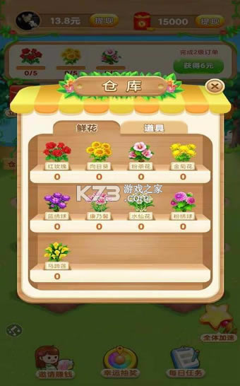 2、每天上线签到领取红包奖励,同时浇水施肥让自己的花快点长大;