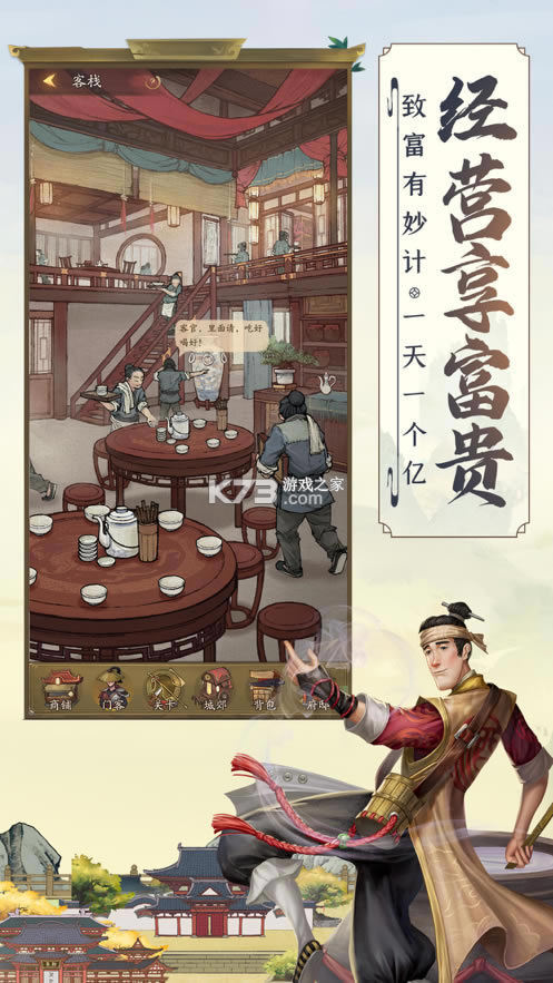 一款复古画风的模拟经营手游,游戏中玩家将会置身在古代市场中,精湛的水墨气质和精美的立绘角色,瞬间带你梦回古代,在这里开启一段属于你的经商人生。