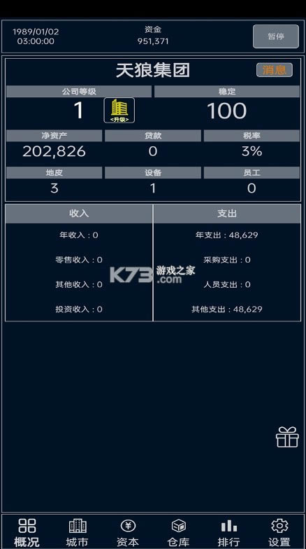 创业策略,开局一个聚宝盆,金币无限点击领取。商品生产、开新商铺扩张业务、财务投资、财团竞技对决,且看你如何神奇使用金手指,步步为营打造商业帝国。