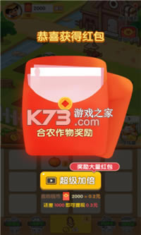 这是一款非常好玩的农场经营游戏,游戏为大家带来超多经典玩法,经营农场合成升级,还能通过看视频赚钱,在玩法上又进行了一点点创新,把农场种植和合成升级游戏相结合。我们合成几级,每次使用翻倍领取红包,也可以去种植,一样的结果。