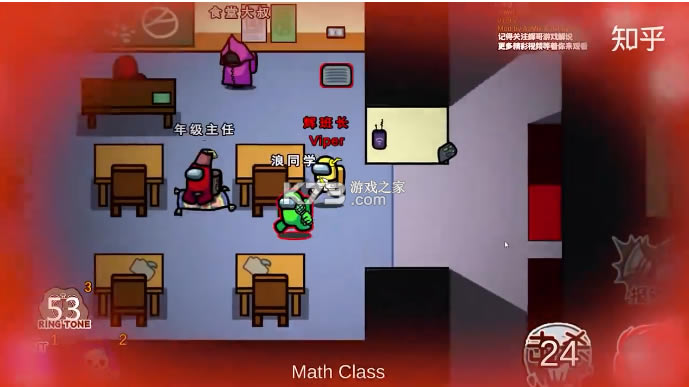 《among us学校模式中文版》是游戏最新推出的新模式,游戏中船员们将会化身为游戏中的各种角色,而内鬼则会变身为恶搞员进行对抗,1技能上课铃发动技能后所有的船员必须在20秒内到达教室,否则会变成尸体,但是冷却时间较长,2技能致盲器船员踩中后视野会非常的小,而且还会暴露行踪持续10秒,3技能泻药,对船员使用后10秒后会变成鸡腿。船员中将会出现一名医生,医生可以将中看泻药的船员拖进厕所进行救治。