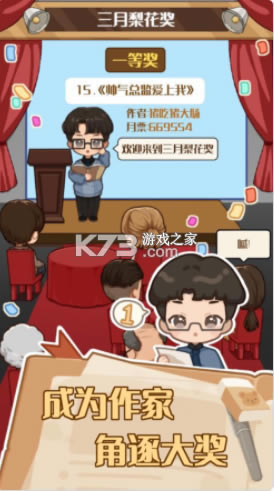 玩法娱乐性高的模拟经营养成游戏,你将在游戏里扮演一名默默无闻的小说家,为了尽早的完成自己的梦想,除了吃饭就是码字。除了要承担高额房租之外,随时面临着破产的风险。为了尽快的摆脱这种困境,一起努力,让自己能尽快的摆脱困境,走上人生巅峰。