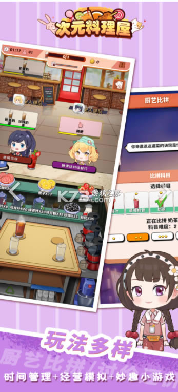 《次元料理屋破解版》拥有高自由度的开店铺烹饪食物的游戏,从采购原料、讨价还价,快来经营属于你自己的茶饮店和烘焙店奶茶、水果茶、奶盖茶、奶昔、蛋糕、中式酥饼、面包、冰沙、派、饼干、蛋挞、布朗尼等等应有尽有游戏包含最最仿真的店铺经营元素,到学习菜谱、定制菜单,需要仔细考量收支平衡,还有聘请/管理店员,才能从白手起家到日进斗金。