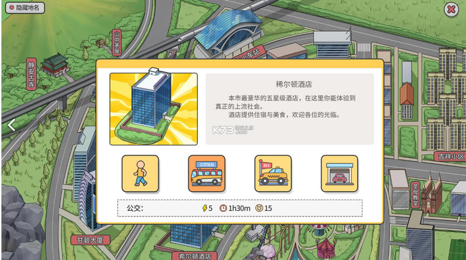 每个地点都有独特的互动,理发店可以理发和染发,服装店可以购买各种服装,医院里可以看病和整容,房产中介可以买房和租房,网吧可以上网和睡觉等等等等...