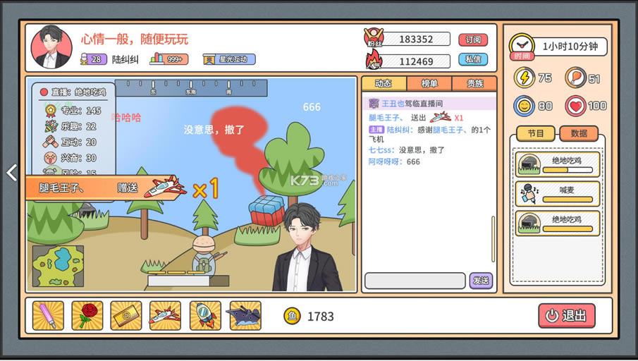 在这里,你不仅能够全方位体验到成为一名主播的感觉,从无人问津的路人主播,默默耕耘(或是尝试旁门左道),成长为一名各大公司争抢的超级大主播