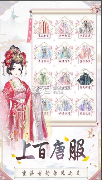 华丽的衣服随意搭配,千种华丽的古代汉服搭配变换,你的才华搭配出最美的服装套装;数百件清新、华丽、典雅、甜美的古唐装,被贴上各种风格的标签,并配以独特的唐风。精致妆容,千人之上,体验大唐魅力。