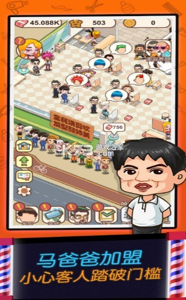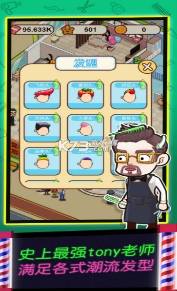 我爱洗剪吹游戏是一款采用简单卡通风格图形打造的趣味美发店经营模拟游戏。在这个美发店之中每天都有着很多有趣的东西发生着,我们可以进入到美发店之中展开欢乐好玩的互动比拼,招募更多技术高超的托尼老师来你的美发店工作,使你的美发店更加火爆。
