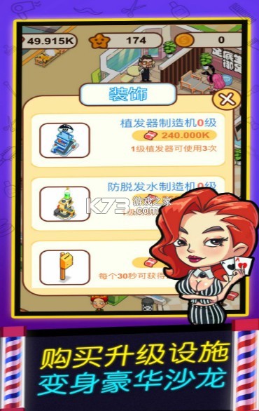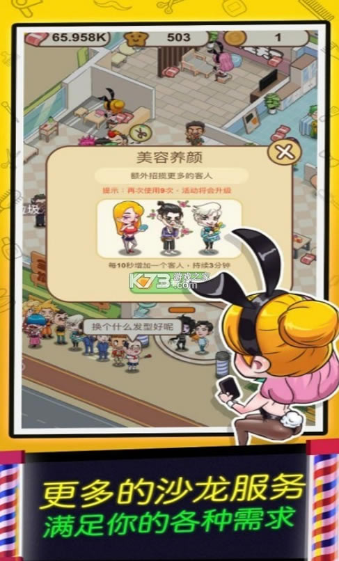 《我爱洗剪吹》游戏中你会看到一家理发店了,你可以来经营理发店,招聘超多的托尼老师,加入你的店子,为客人带来满意的理发服务。当然你也可以拓展更多的服务让大家的需求得到满足,慢慢发展你的店铺,会有更多的人想要加盟哟。