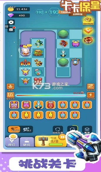 卡卡保皇游戏里,玩家能够使用不同的炮台抵御不同的战斗,升级自己的炮台,利用好高科技工具,能获得更好的体验。