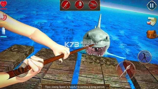 在您收集物品时,请进行生存岛海游戏和海洋生存游戏,请注意,因为饥饿的鲨鱼身在您身后,它们可以猎杀您或捕食它们。
