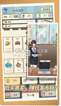 一款题材十分经典的模拟经营类游戏,玩家扮演一名18岁刚刚步入社会默默无闻的上班族,却发现生活如此艰难,能否在退休前赚够100亿实现人生目标呢?