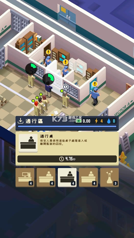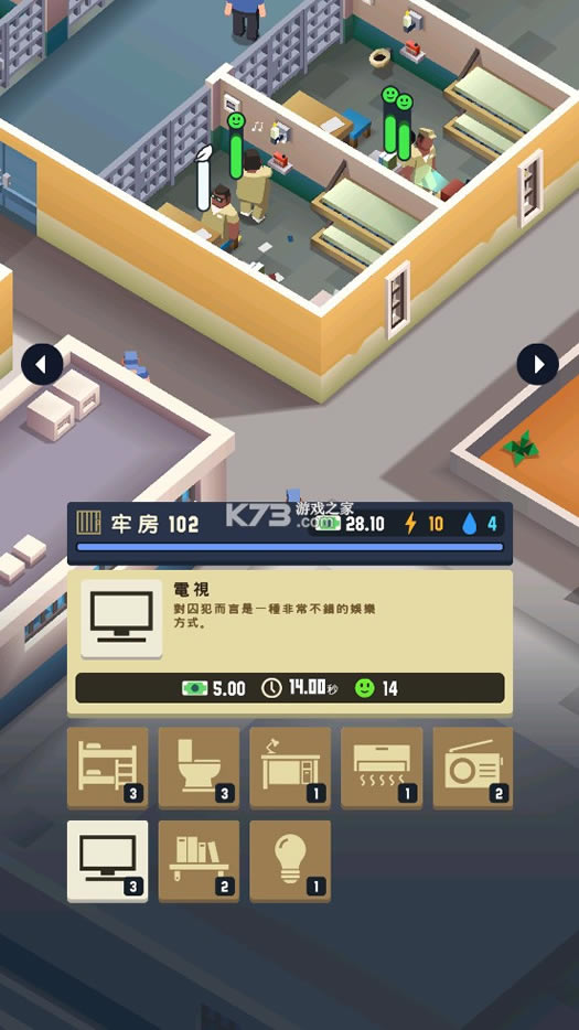 一款监狱监狱管理游戏,游戏采用低多边形的图形风格,可以更加方便的管理监狱,你可以模拟当一名典狱长,合理的安排好您的监狱的人员,照看好监狱的每一个人,你可以安排监狱每个区域的犯人的日常,让您的这里面的人可以顺利的完成他们的这款生活历程,你要不断的满足不同犯人的需求,尽量不要让犯人对你产生不满,合理额安排好他们的日常生活,这样就会得到应有的回报。