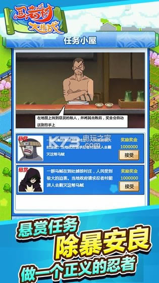 《忍者村大作战》来到这个像素世界中成为忍者村的村长,忍者村大作战安卓版以复兴并壮大忍者村为目标,不断培养出各种不同类型的忍者,并且将他们派往全世界快速实现统一目标。