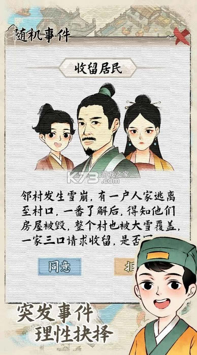随着水乡的发展,会遇到各种各样的事宜需要你来安排抉择,比如碰上行情好的时候会有跟邻村交易物品的机会,比如遇到外地居民前来投靠求收留,比如在镇内广场有娱乐活动......