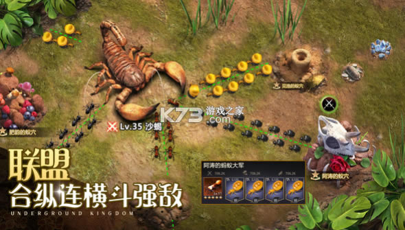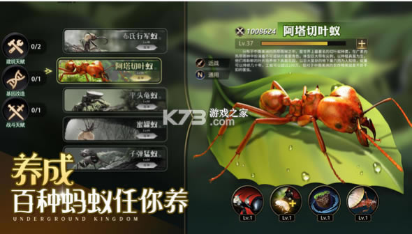 模拟真实蚂蚁生态,呈现超还原的蚂蚁族群对抗,诚邀统领齐聚地下王国