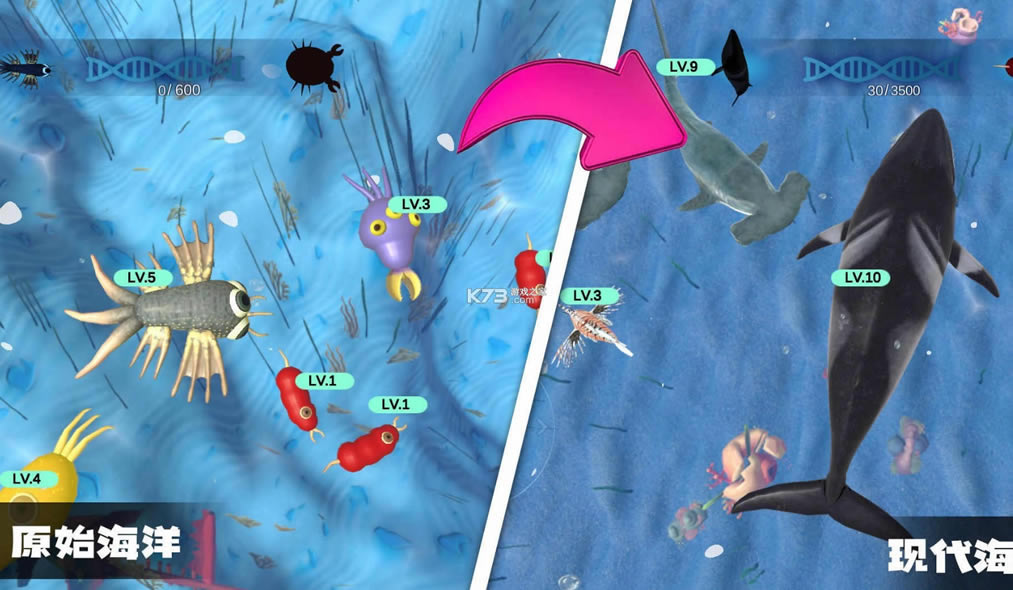 玩家需要去吞噬更小的生物,看似平静的大海,却隐藏着与人类世界一样的危险