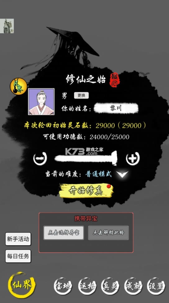 一款单机的修仙游戏,体验一位凡人获得圣珠后,在凡界经商赚取灵石,吞噬灵石提升境界。最终成为一方巨擘甚至飞升仙界的修仙之旅。