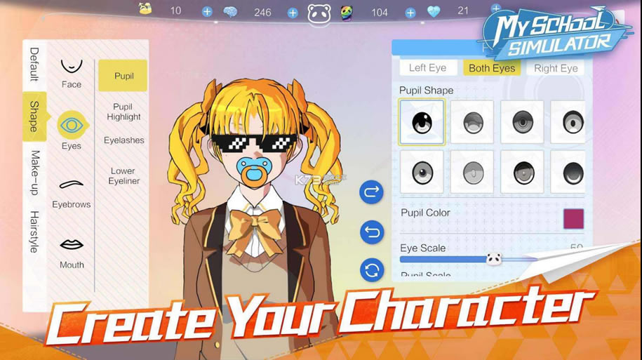 还可以自由捏脸,除了学校还能上街,探索这个小镇的点点滴滴,和朋友一起参与好学生团体或者一起干坏事,享受你的校园生涯。