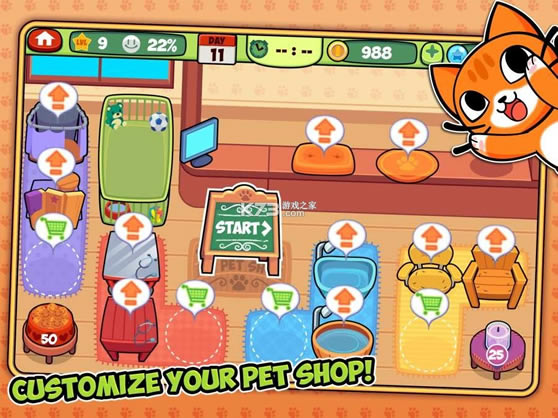打理好后可以收取金币,金币能够用来解锁新的物品和升级建设宠物店。