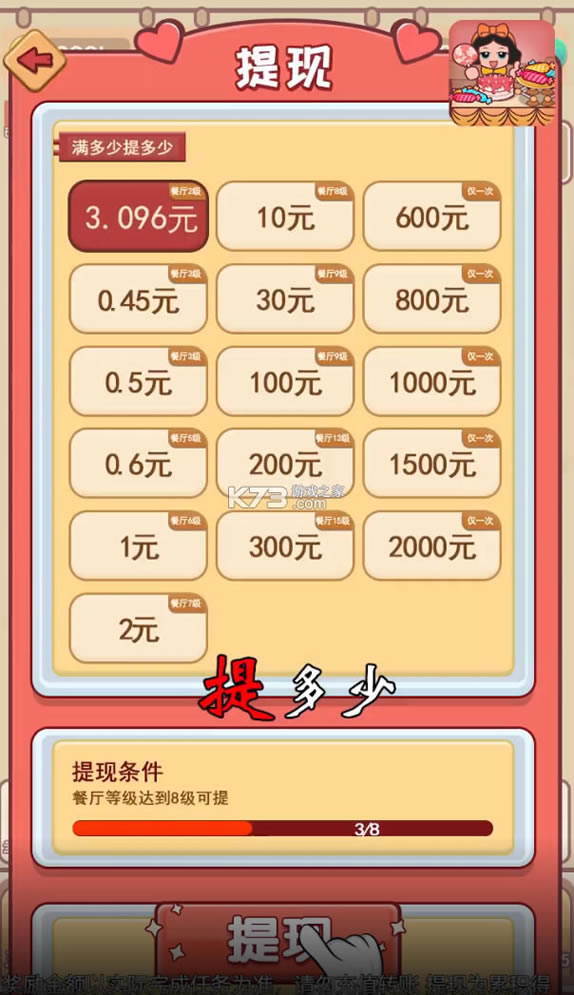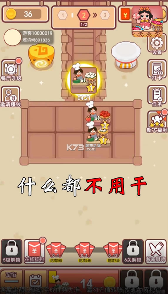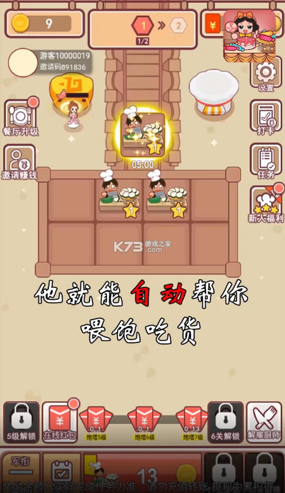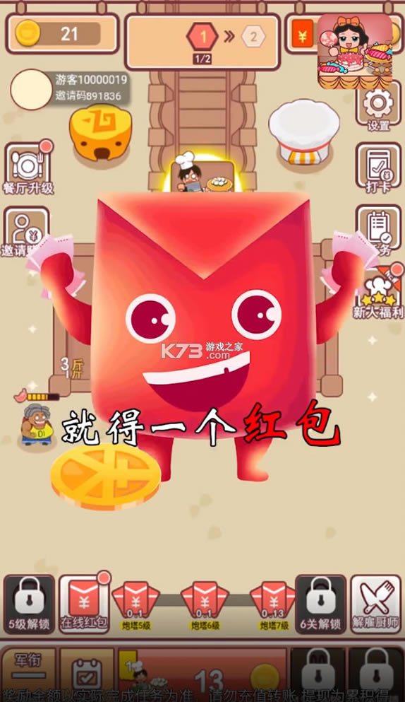 以餐厅经营为题材的休闲类手机游戏,这里加入福利赚红包模式,不断解锁升级你的餐厅,招揽更多客人,完成美食订单,非常值得玩家们期待!