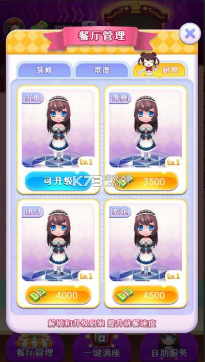烹饪美食,雇佣漂亮厨娘帮忙,装修个性餐厅,获得顾客美誉。