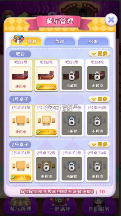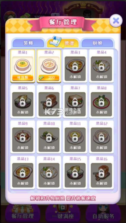 3、招募到更多的管理人员来协助你,不断的更新自己的菜谱来进行制作。
