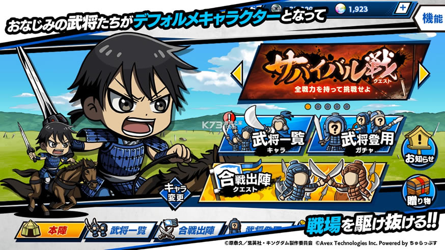 《王者天下DASH!!》是以 TV 动画《王者天下》为題材制作的手游新作,由 churapps 和 Avex 共同开发。