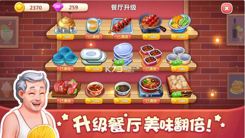 全力赚取更多的金币,升级和打造顶级的餐厅