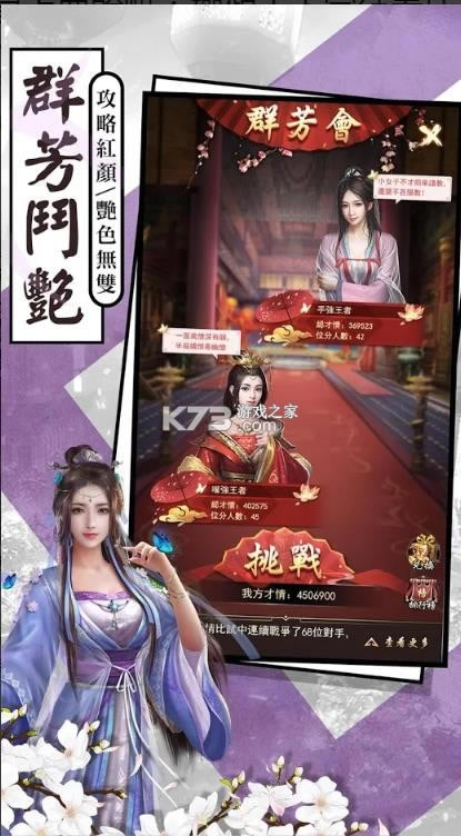 性格各异的美女红颜也可以进行颜值比拼,亲密比拼,玩味十足,告别枯燥乏味。